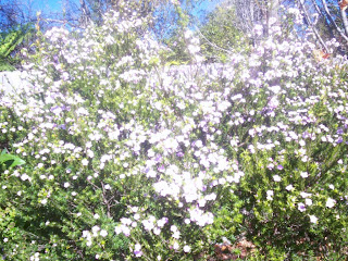 Tiny winter Iris peep out from under the Agapanthus leaves and my Diosma in full bloom.